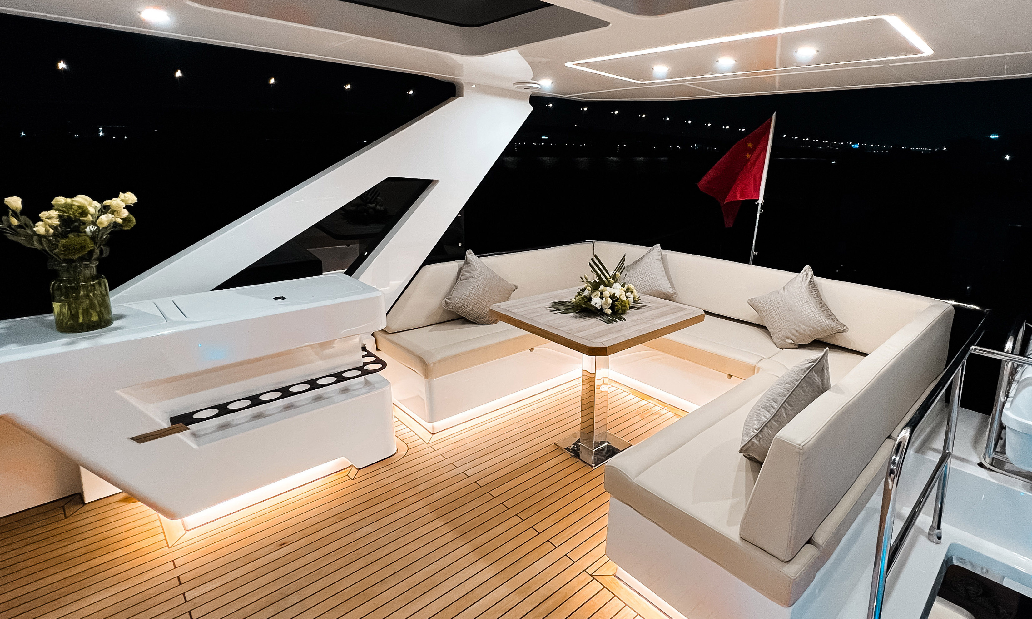 陽光甲板搭配U字舒適沙發,形成私密的社交娛樂空間。