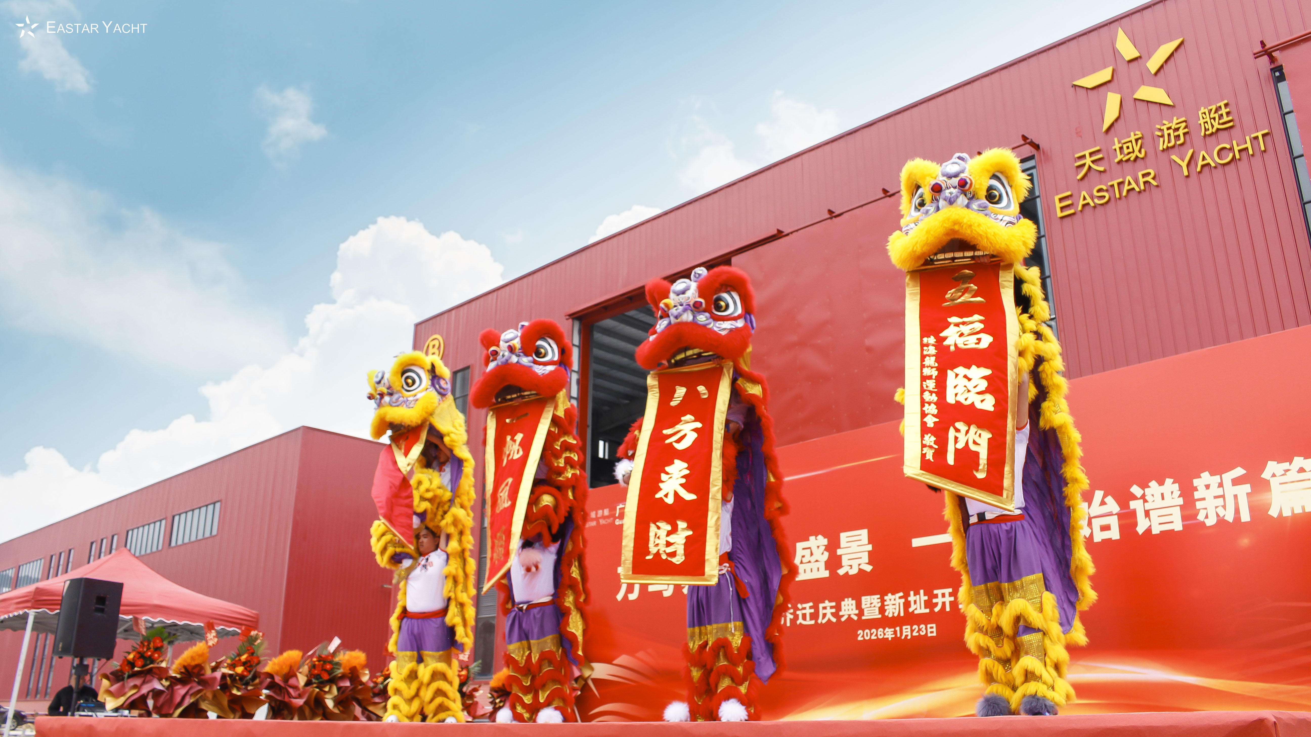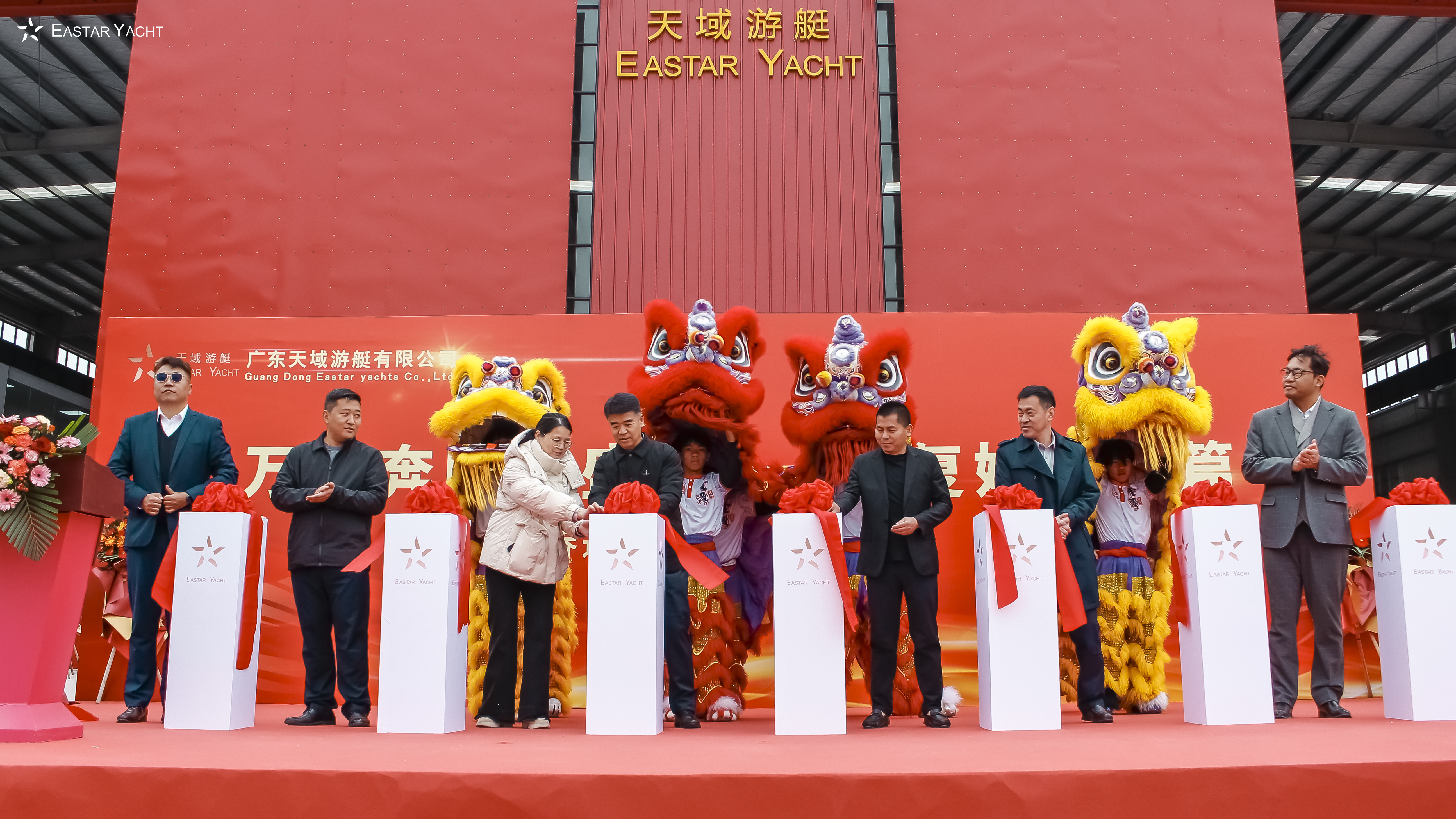 天域遊艇三期製造基地喬遷慶典盛大啟幕!現場祥獅獻瑞、鼓樂喧天,各級領導、行業嘉賓、知名商協會與核心合作夥伴齊聚一堂,共同見證這一重要的發展裏程碑。