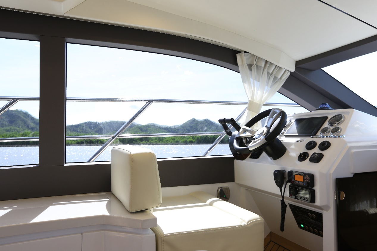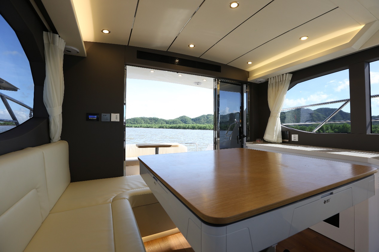 駕駛艙特色休閑功能,也是目前在同尺寸範圍唯一,在駕駛艙帶麻將桌的動力艇。