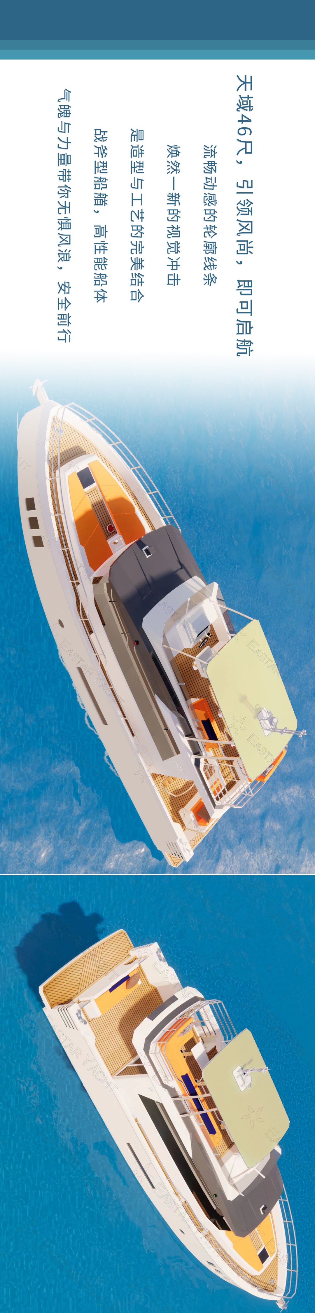 天域46尺時尚休閑遊艇,休閑與時尚平衡,潮流與經典永存