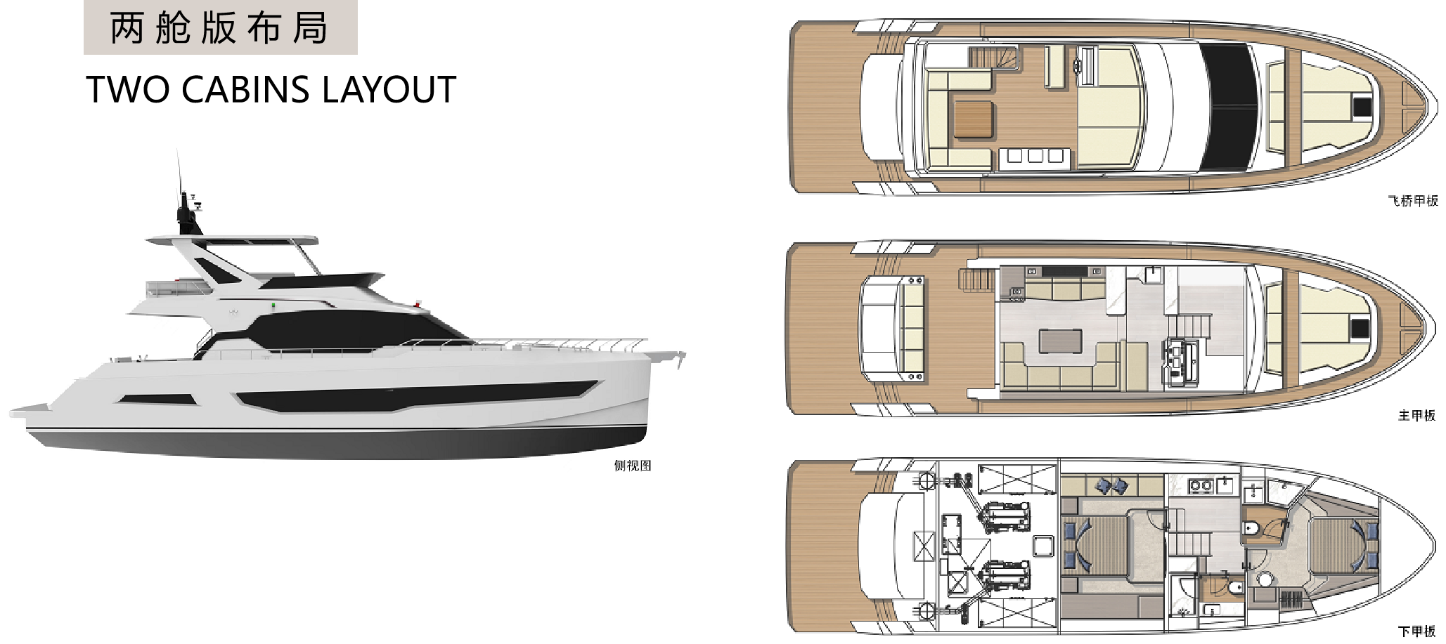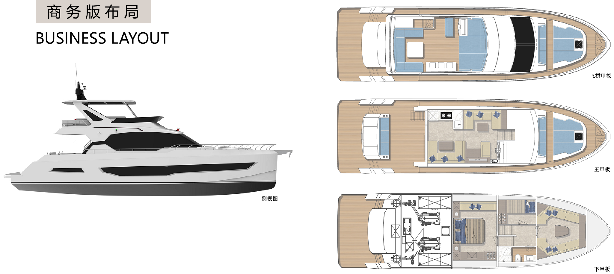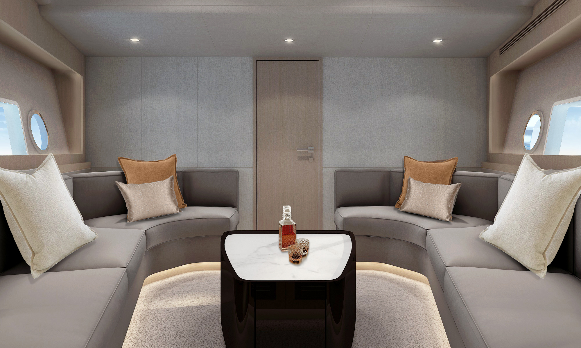 直觀的設計體現了硬朗中帶著柔和的曲線元素,開放式空間和舷窗為內部提供充足光線,讓您坐享廣闊視野的同時,也能擁抱清涼海風。