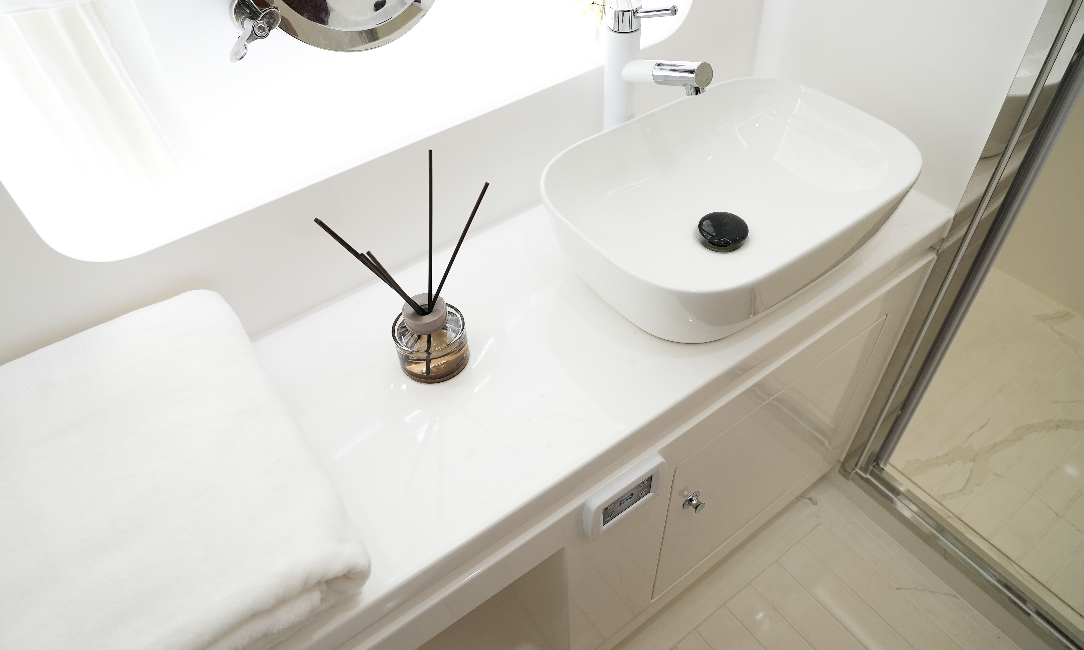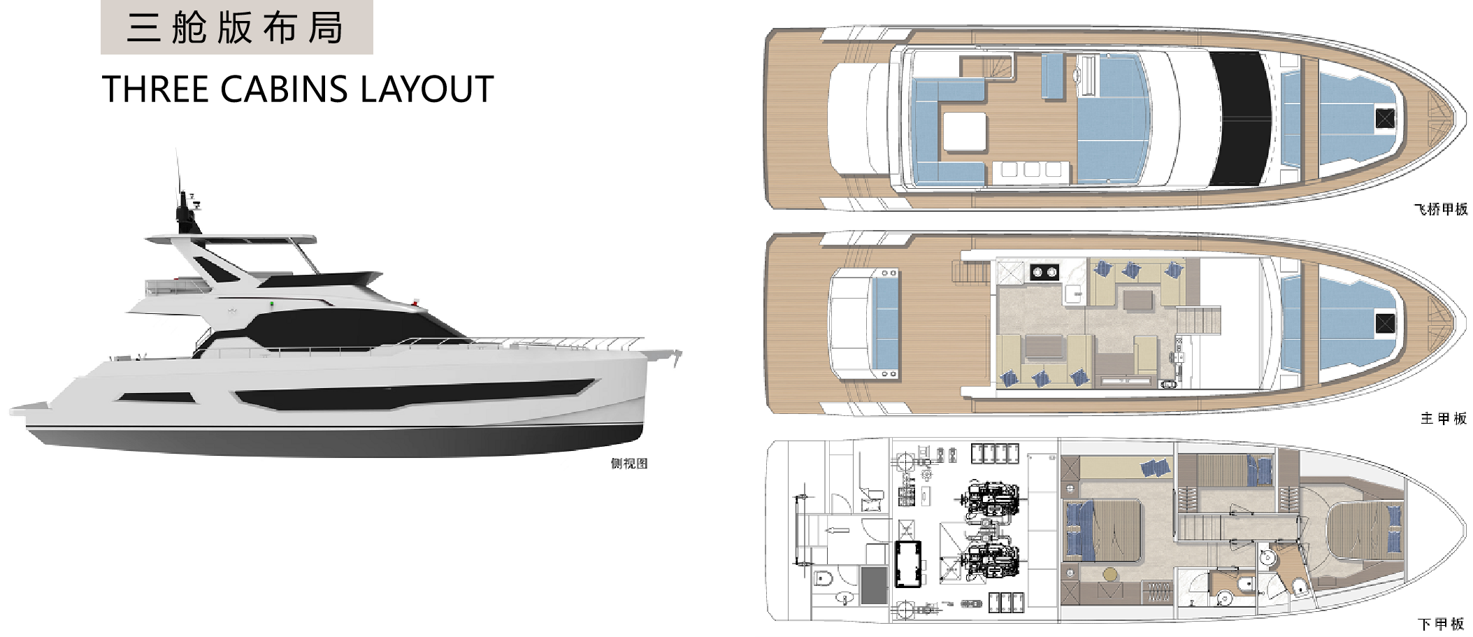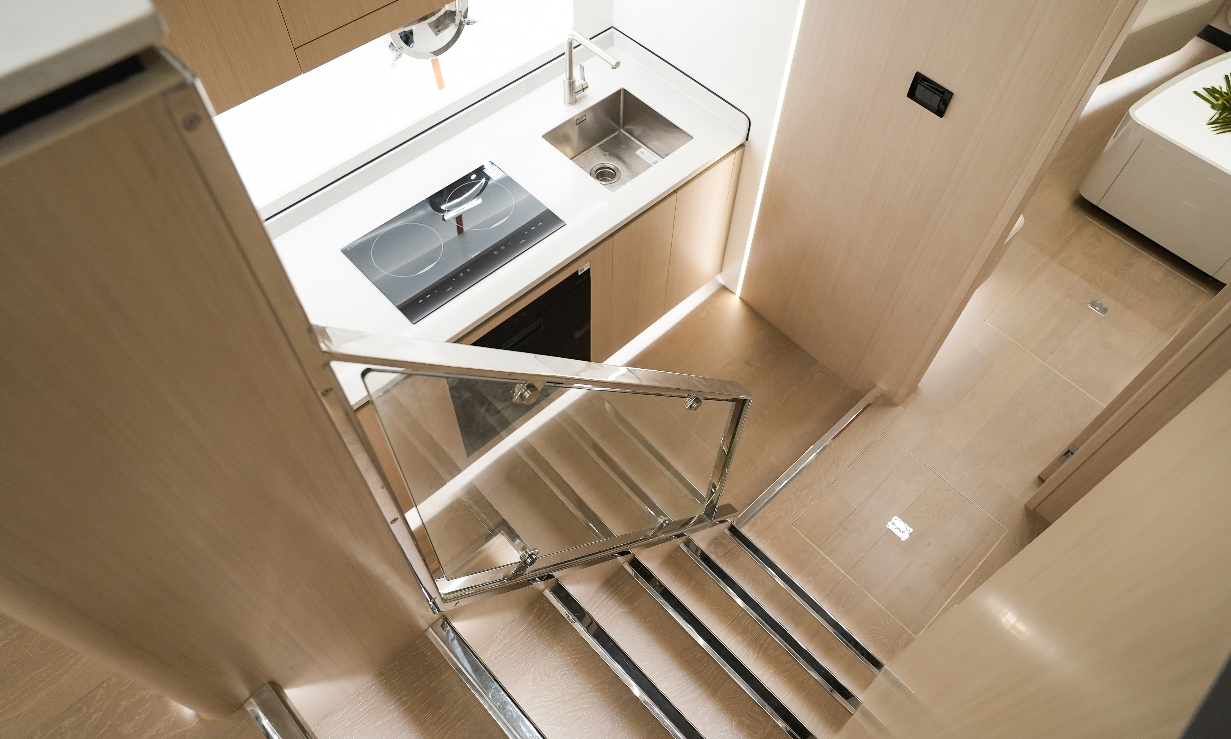 直觀的設計體現了硬朗中帶著柔和的曲線元素,開放式空間和舷窗為內部提供充足光線,讓您坐享廣闊視野的同時,也能擁抱清涼海風。