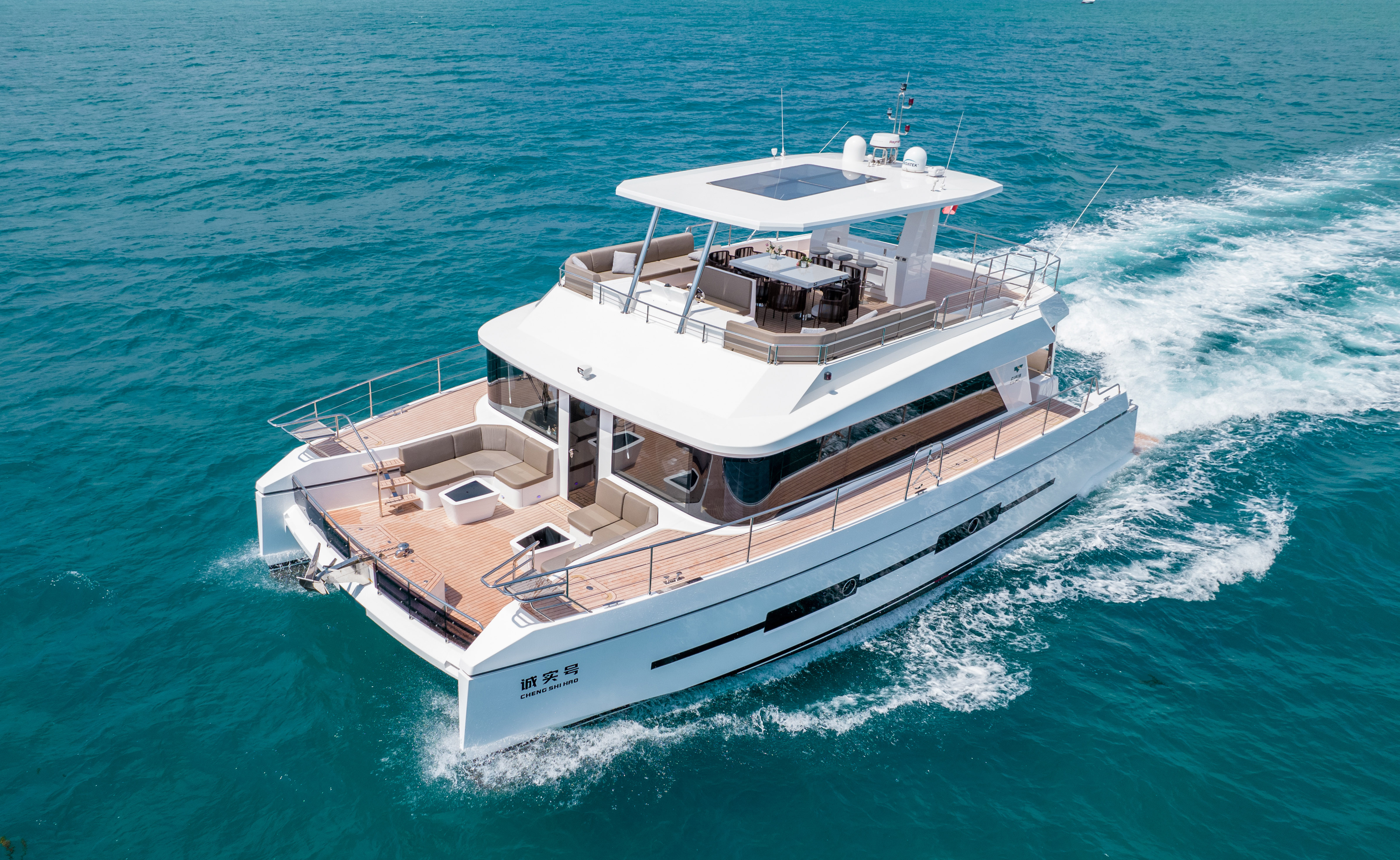 廣東天域遊艇專注於遊艇研發設計、生產製造、銷售以及俱樂部經營的新型豪華遊艇品牌商,主要產品有46尺時尚休閑遊艇、56尺雙體動力商務遊艇、60尺、70尺、80尺戰斧型豪華商務二類遊艇以及116尺一類航區豪華超級遊艇,產品設計無論在品質、外觀及軟裝都采用高標準,受到廣泛關注,在2022中國遊艇大獎頒獎典禮中,榮獲“最佳中國製造獎”!