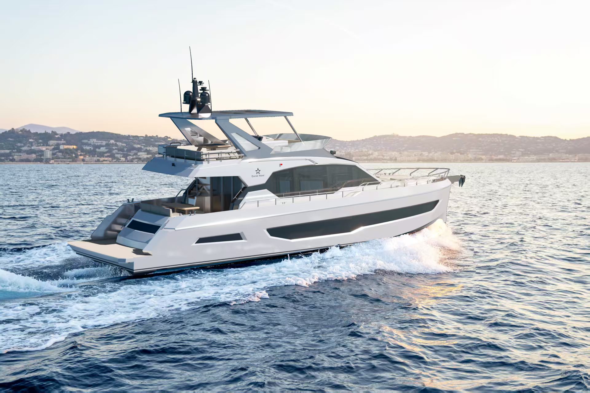 在天域遊艇展出的眾多船型中,56尺chi雙shuang體ti豪hao華hua商shang務wu遊you艇ting宛wan如ru海hai上shang的de移yi動dong宮gong殿dian,一yi登deng場chang便bian牢lao牢lao抓zhua住zhu眾zhong人ren目mu光guang。這zhe款kuan自zi主zhu研yan發fa的de遊you艇ting融rong合he豪hao華hua與yu舒shu適shi,采cai用yong戰zhan斧fu造zao型xing搭da配pei垂chui直zhi船chuan艏shou,線xian條tiao剛gang勁jin流liu暢chang。三san層ceng空kong間jian布bu局ju合he理li:飛橋甲板設餐桌、吧台;主甲板配備沙龍區、影音娛樂係統;下甲板主臥帶衛浴,打造高品質海上空間,為乘客帶來極致的海上居住體驗。