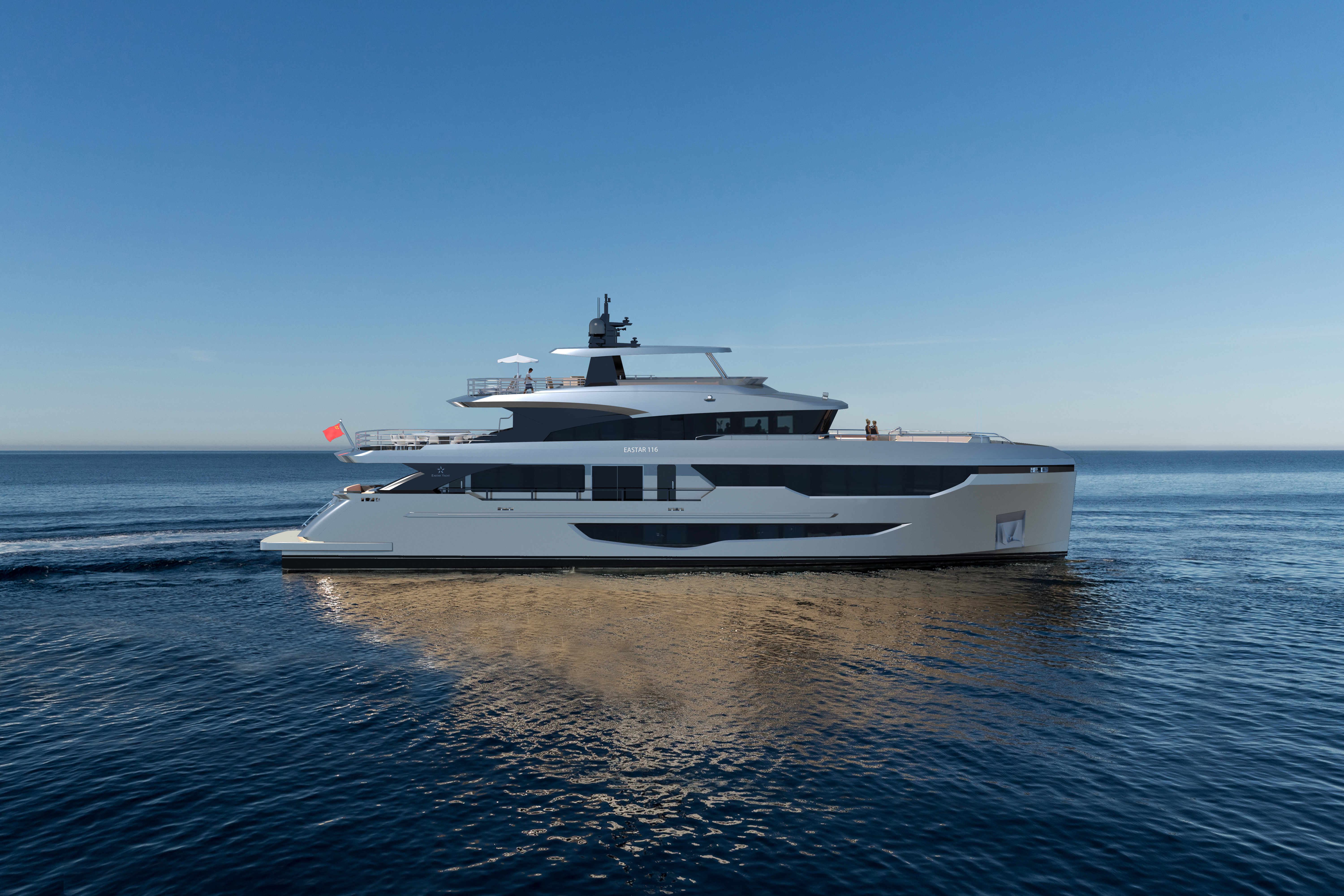 116尺超級遊艇由天域與海外團隊聯合打造,曆時12個(ge)月(yue)完(wan)成(cheng)。以(yi)藝(yi)術(shu)為(wei)靈(ling)感(gan)源(yuan)泉(quan),以(yi)舒(shu)適(shi)為(wei)設(she)計(ji)基(ji)礎(chu),在(zai)保(bao)證(zheng)節(jie)能(neng)航(hang)行(xing)性(xing)能(neng)的(de)同(tong)時(shi),傳(chuan)承(cheng)經(jing)典(dian)的(de)戰(zhan)斧(fu)型(xing)設(she)計(ji)元(yuan)素(su)。簡(jian)潔(jie)動(dong)感(gan)的(de)線(xian)條(tiao)勾(gou)勒(le)出(chu)優(you)雅(ya)大(da)氣(qi)的(de)外(wai)形(xing),寬(kuan)敞(chang)且(qie)功(gong)能(neng)多(duo)樣(yang)的(de)內(nei)部(bu)空(kong)間(jian),為(wei)乘(cheng)客(ke)提(ti)供(gong)了(le)奢(she)華(hua)絕(jue)倫(lun)的(de)體(ti)驗(yan)。